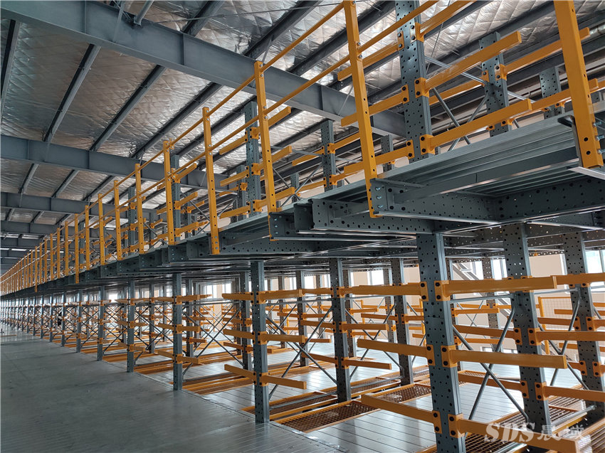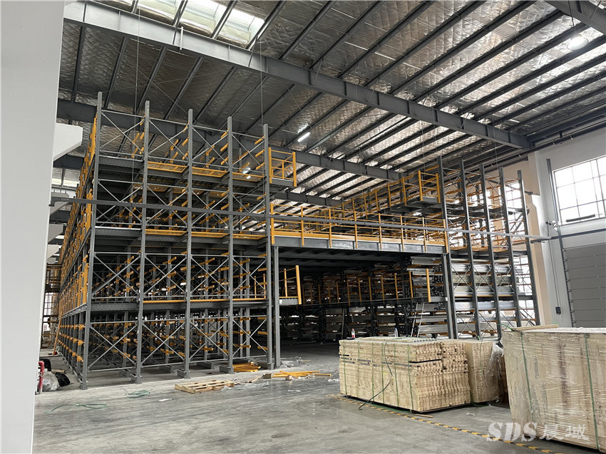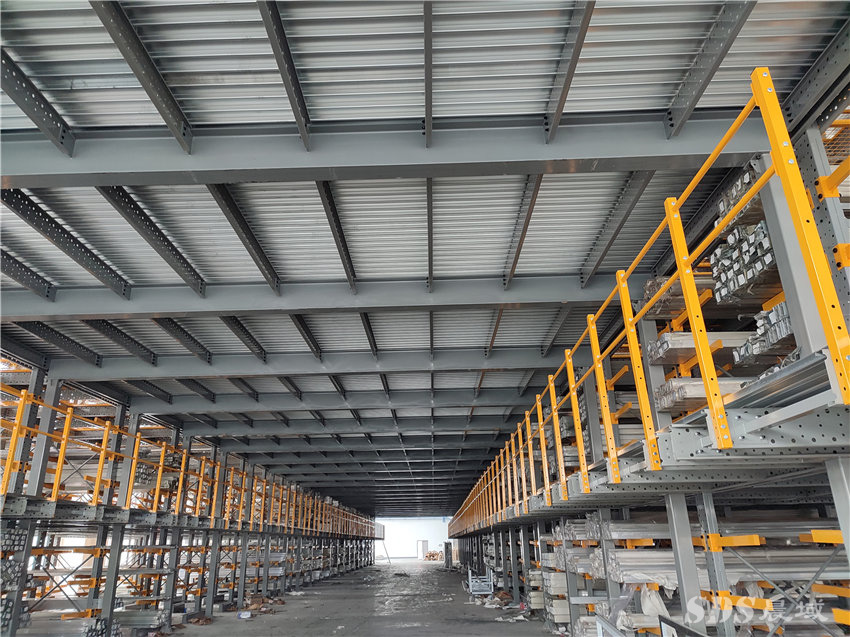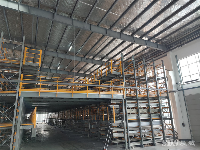 江蘇某建材閣樓貨架案例:閣樓貨架系統(tǒng)是在已有的工作場地或貨架上建一個中間閣樓,以增加存儲空間,可做二、三層閣樓,宜存取一些輕泡及中小件貨物,適于多品種大批量或多品種小批量貨物,人工存取貨物,貨物通常由叉車、液壓升降臺或貨梯送至二樓、三樓,再由輕型小車或液壓托盤車送至某一位置。此類系統(tǒng),通常利用中型擱板式貨架或重型擱板式貨架作為主體和樓面板的支撐(根據(jù)單元貨架的總載重量來決定選用何種貨架),樓面板通常選用冷軋型鋼樓板、花紋鋼樓板或鋼格柵樓板。此類系統(tǒng)在汽車零部件領(lǐng)域、汽車4S店、輕工、電子等行業(yè)有較多應(yīng)用。