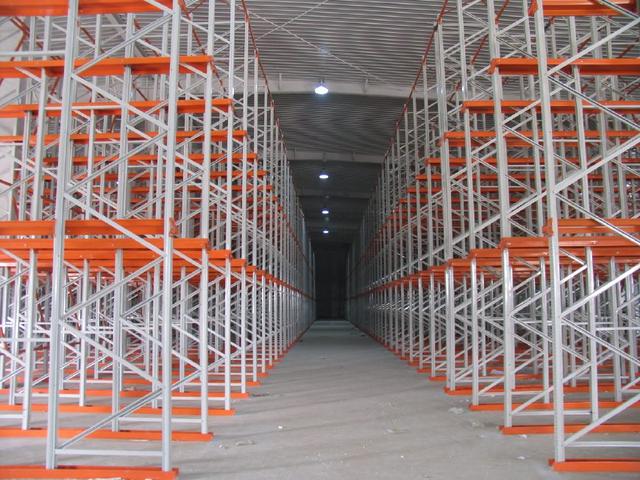 當(dāng)托盤貨物較大而不會形成先進(jìn)先出的工作形式的時候,此類貨架可以簡化工作程序,提升工作效率;由于貨架的存儲面積多而通道較少,故其倉庫的空間利用率比較的高。這顯然對于成本相對高的冷庫較為有優(yōu)勢。所以它們在冷凍庫中較為常用。