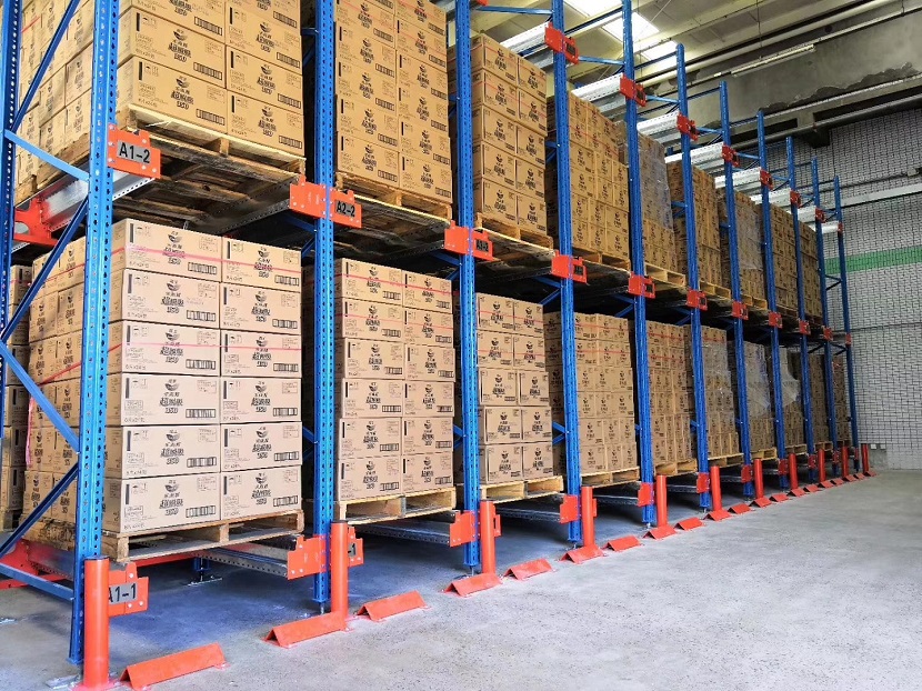 貫通式貨架,出貨方式為先進(jìn)后出適合食品冷庫,生鮮加工冷庫,屠宰廠冷庫。